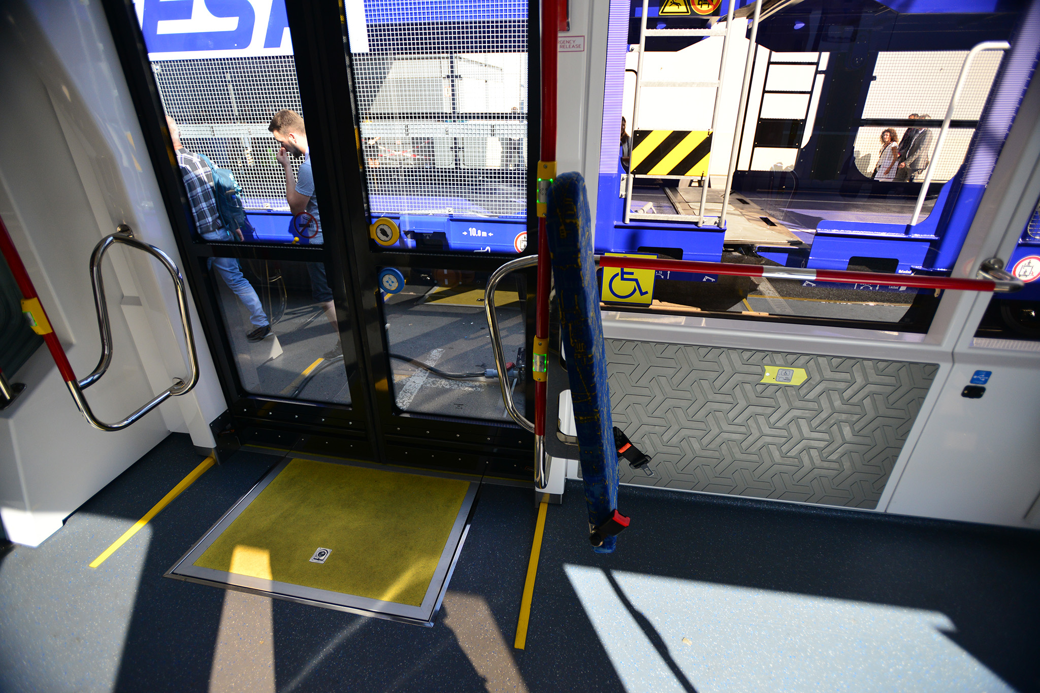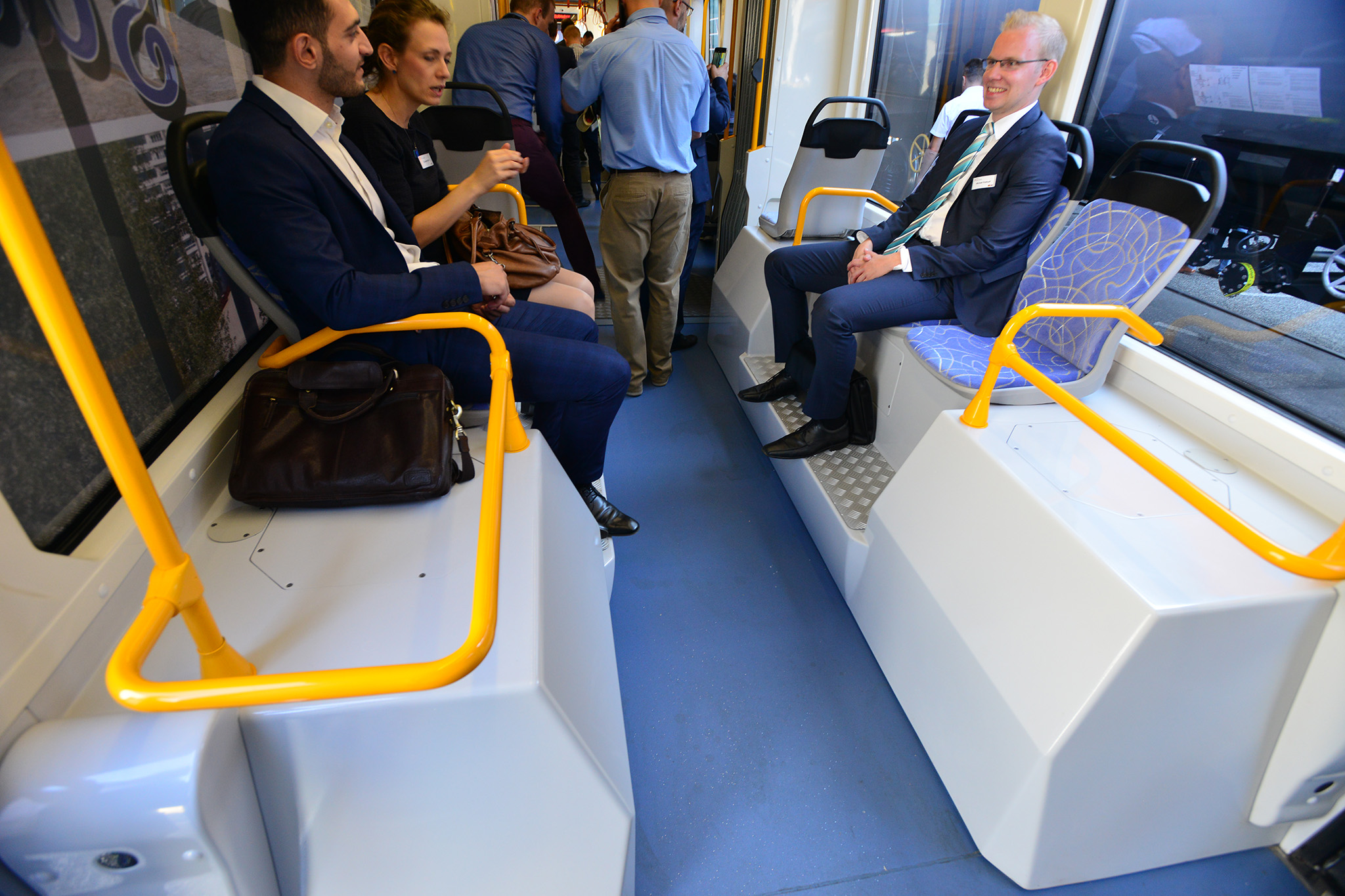 為有效利用空間低底盤轉向架上方亦設計橫向座椅及置物平台。