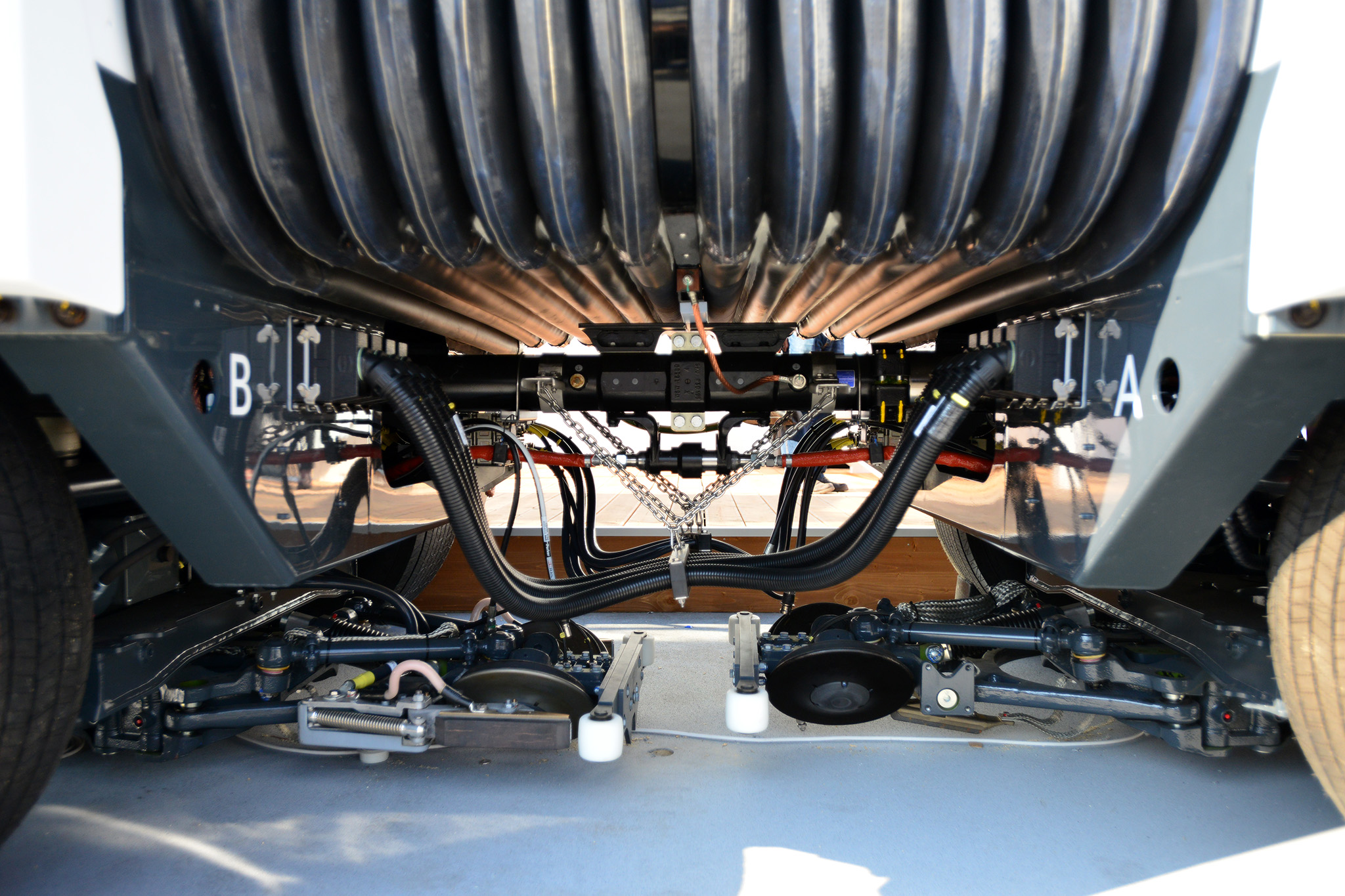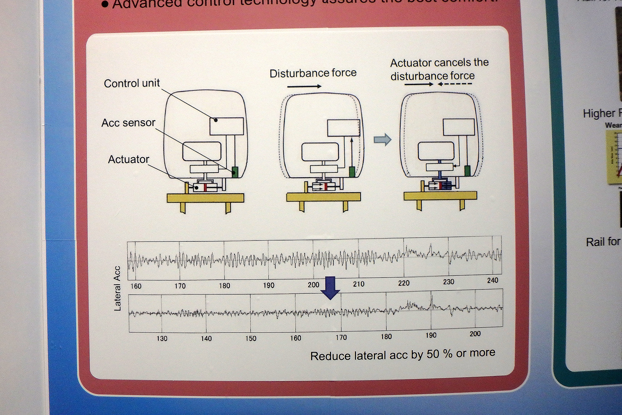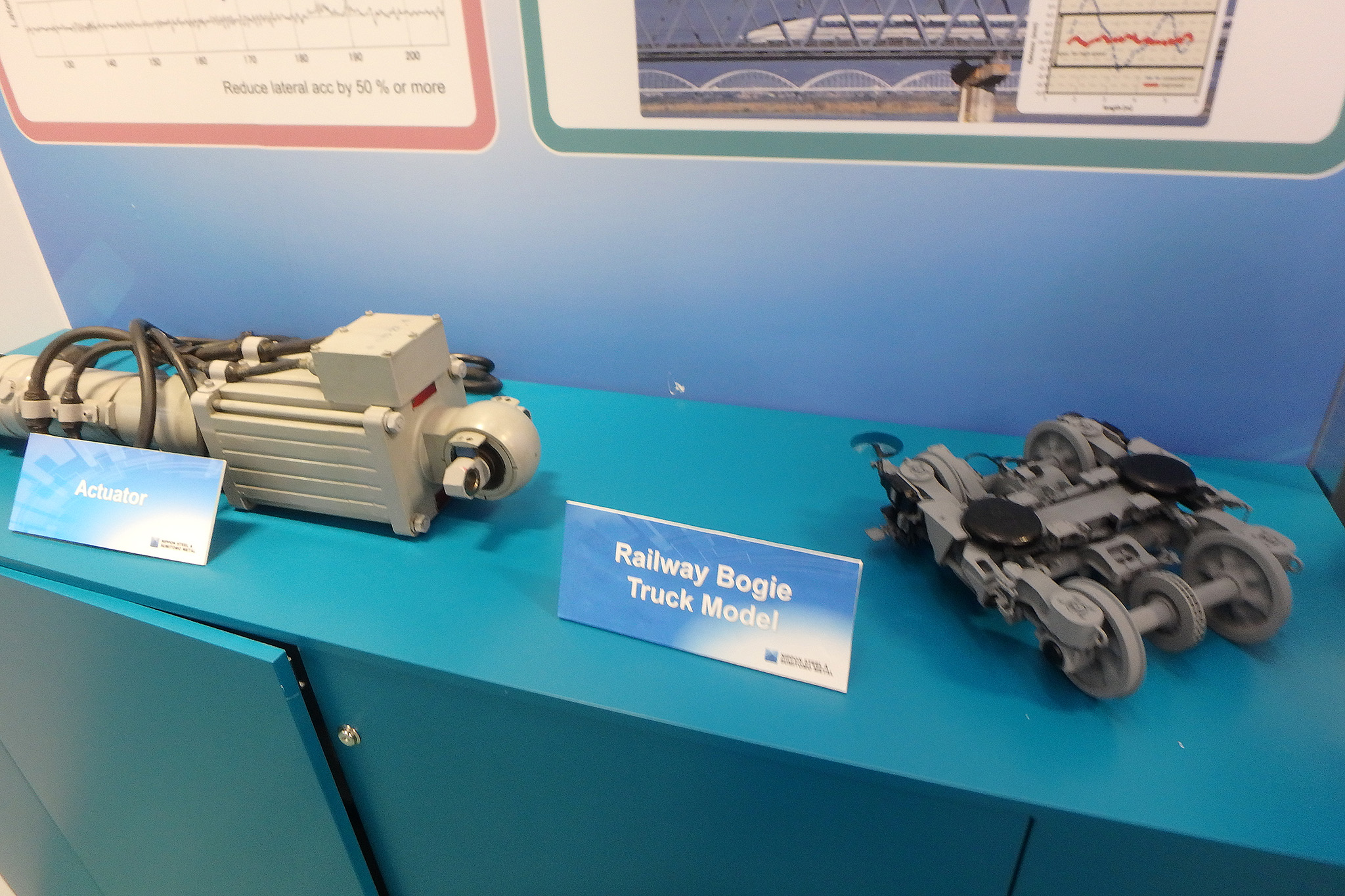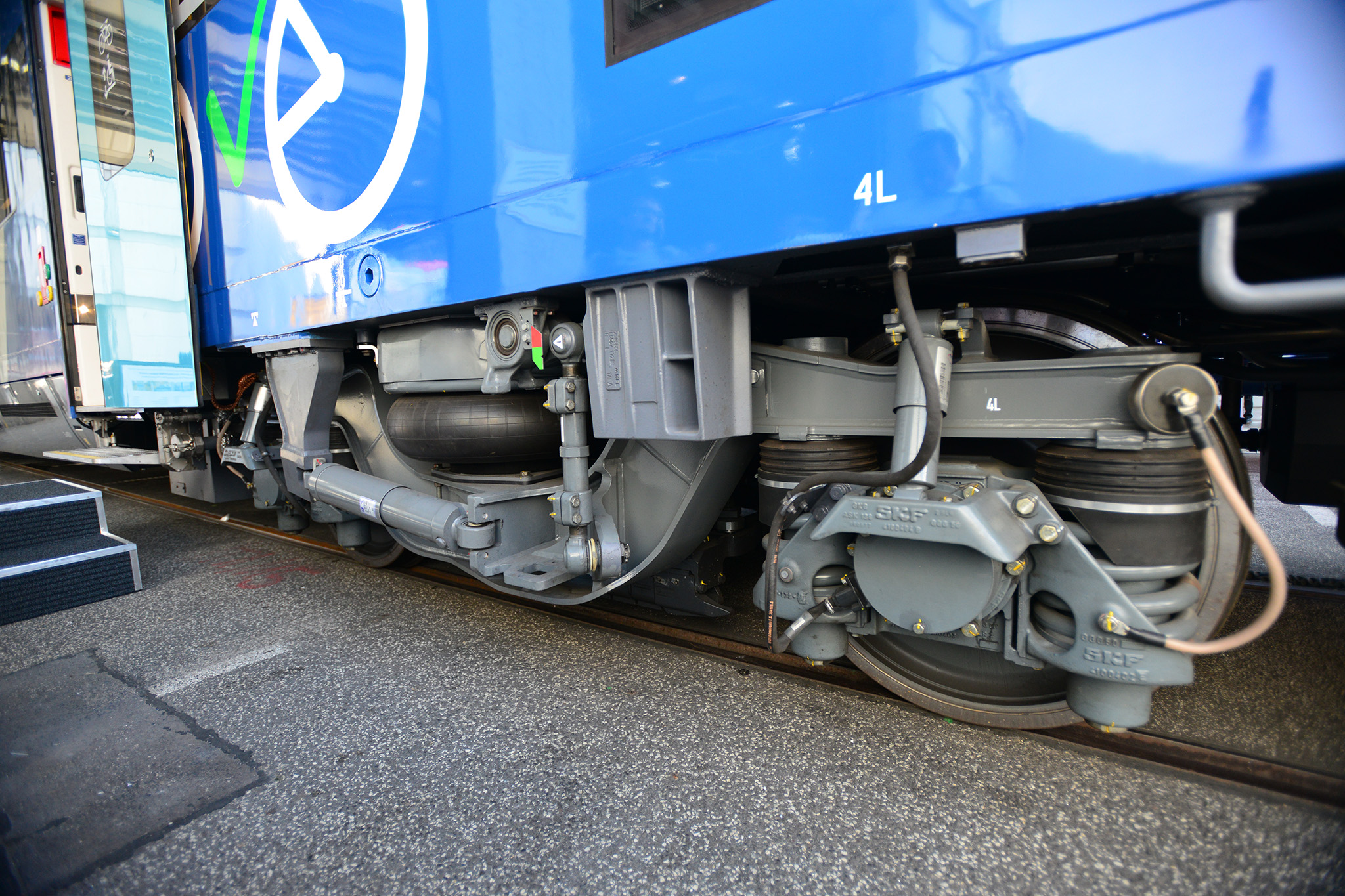 該車輛的轉向架結構,似乎在車體與轉向架間又多一根垂直阻尼,可能是為了減少空氣彈簧的搖擺吧!