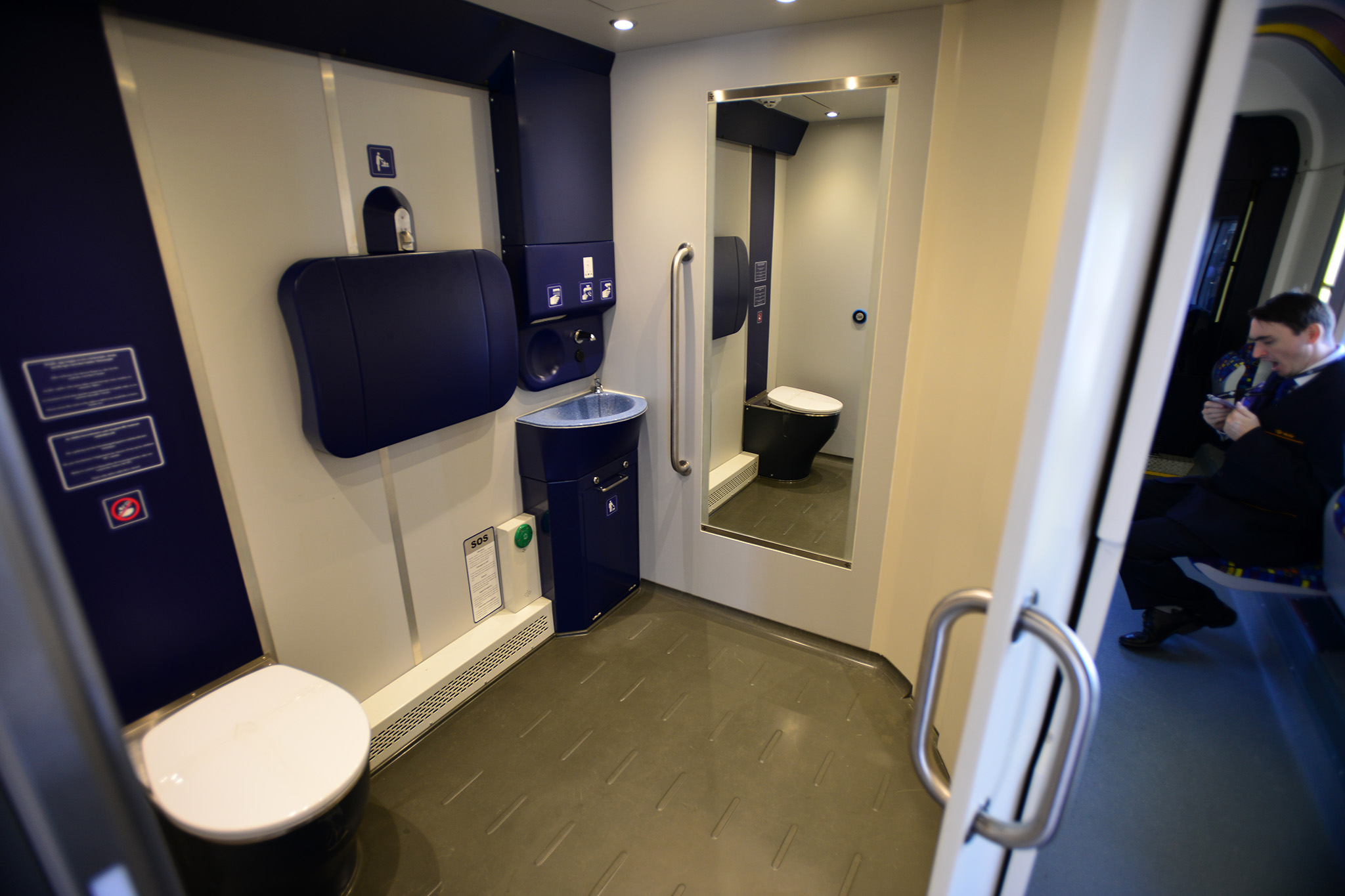 寬敞的多功能廁所,附設活動式嬰兒尿布更換台。