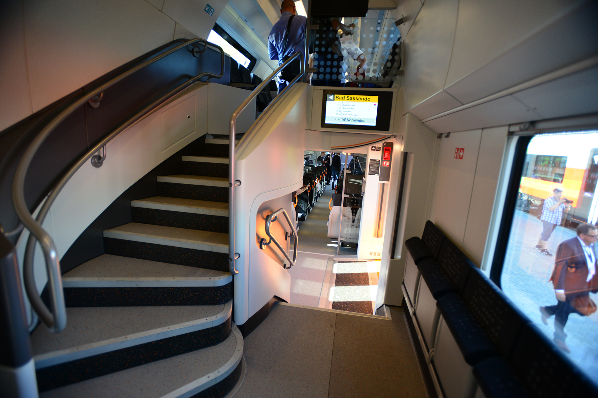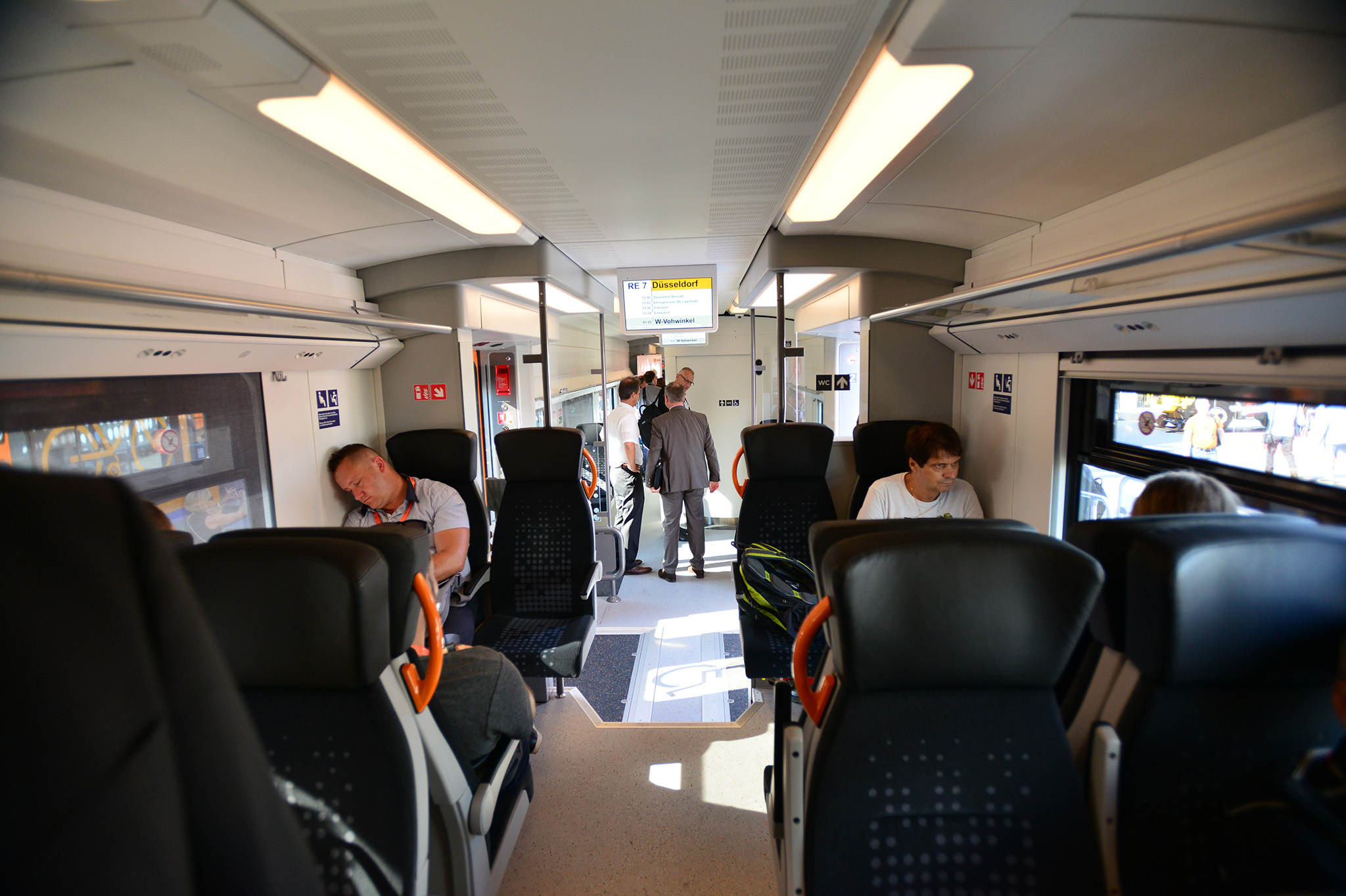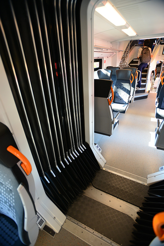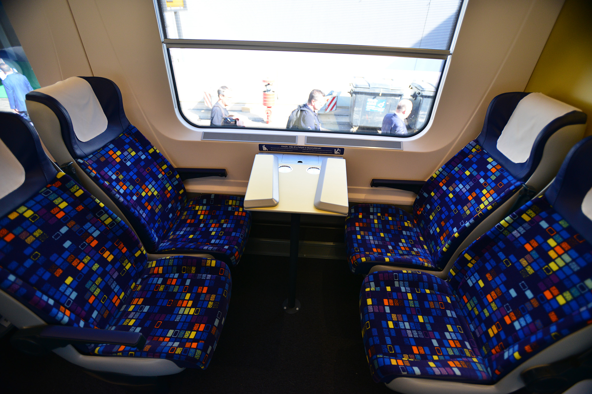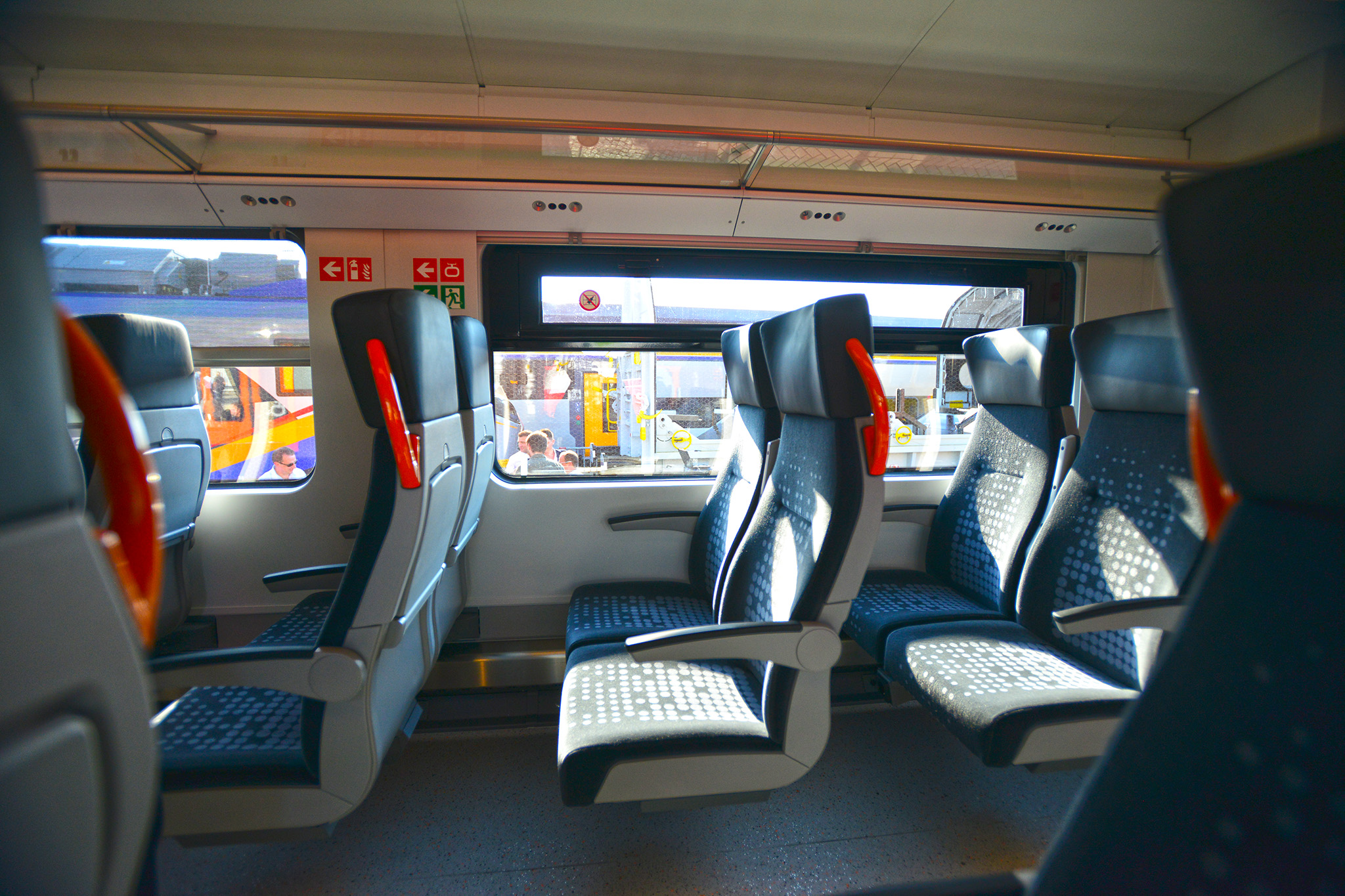 後端車廂的末排座椅配置,因為歐洲路線設計讓列車可以整列掉頭,列車無須原線折返,所以可以省下後端的駕駛台安排乘客座位用。