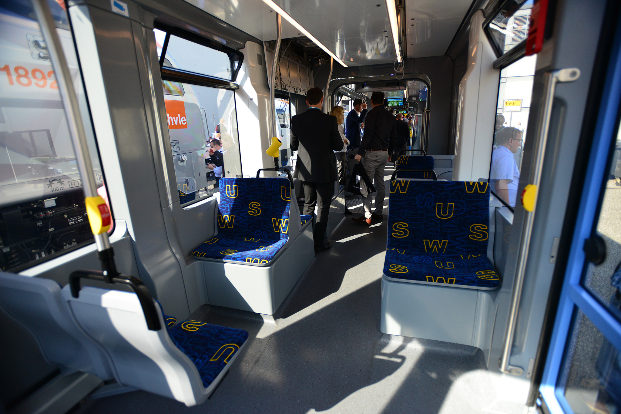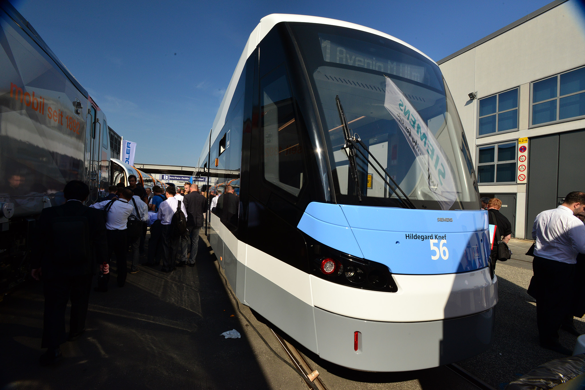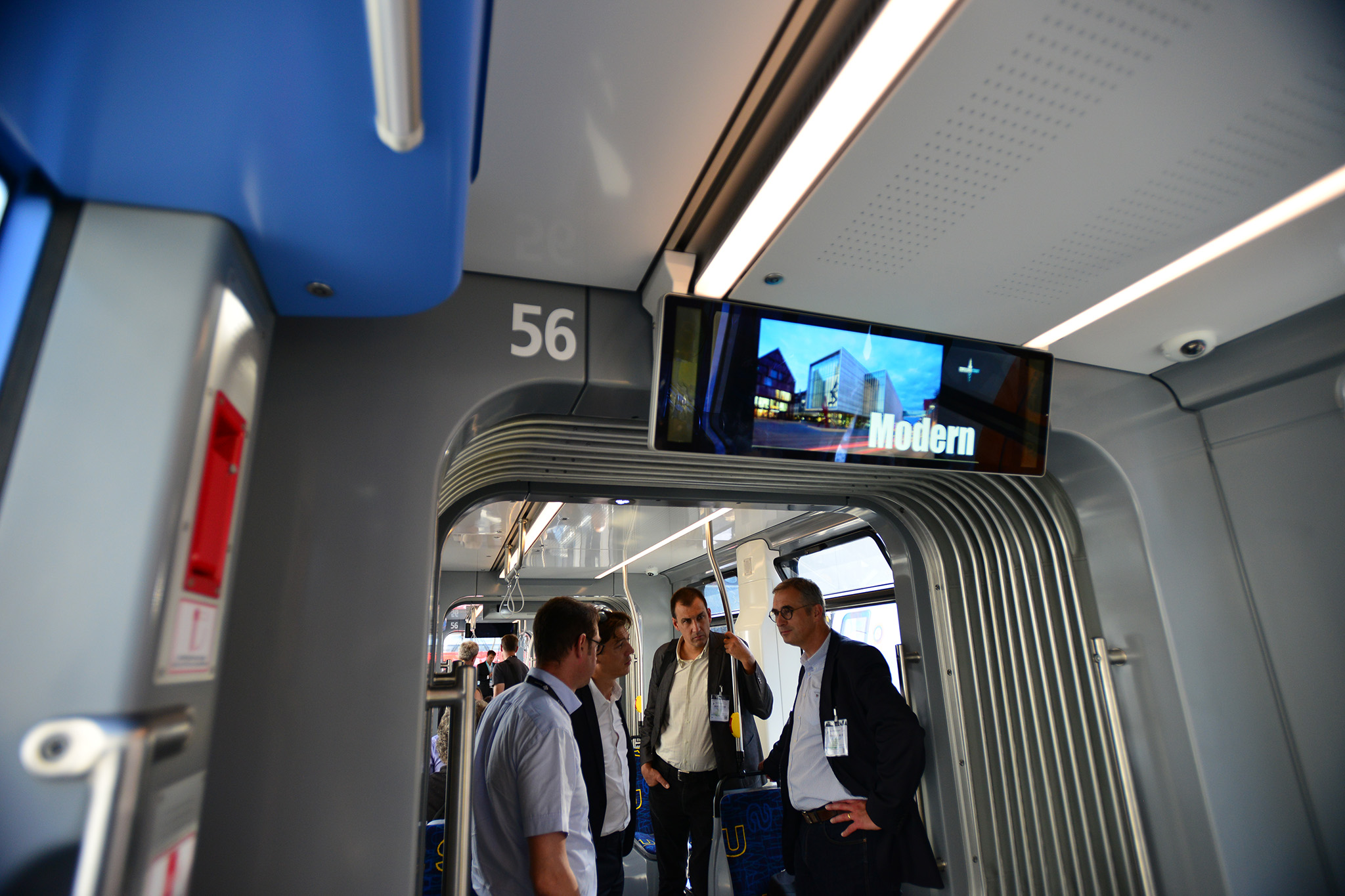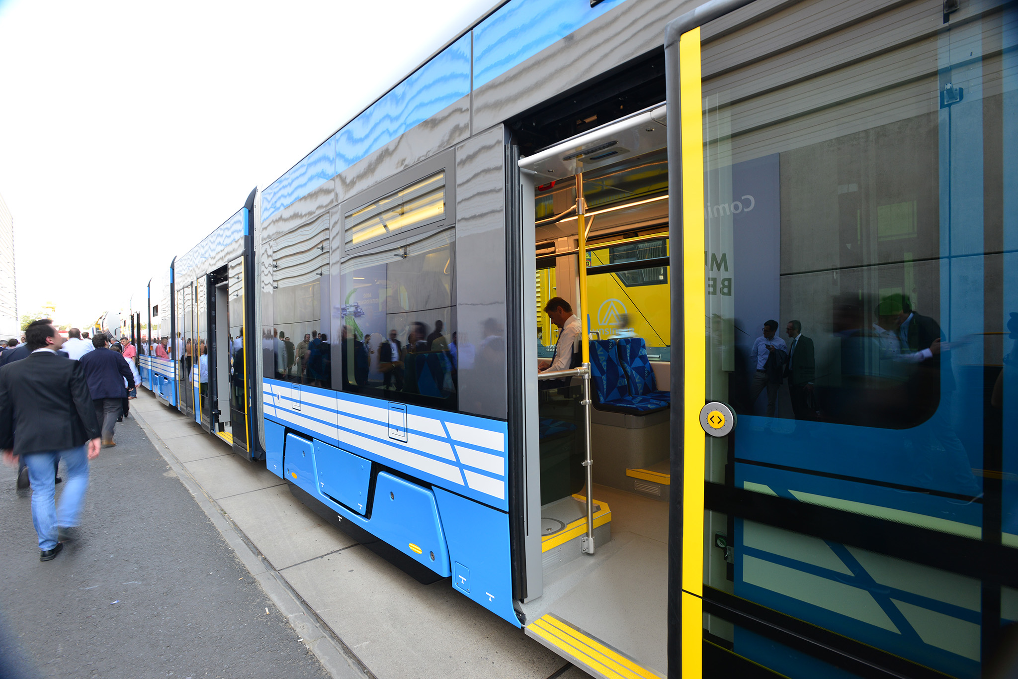 德國西門子生產的Avenio M Ulm輕軌列車,有5節車廂,全車低底盤設計。
