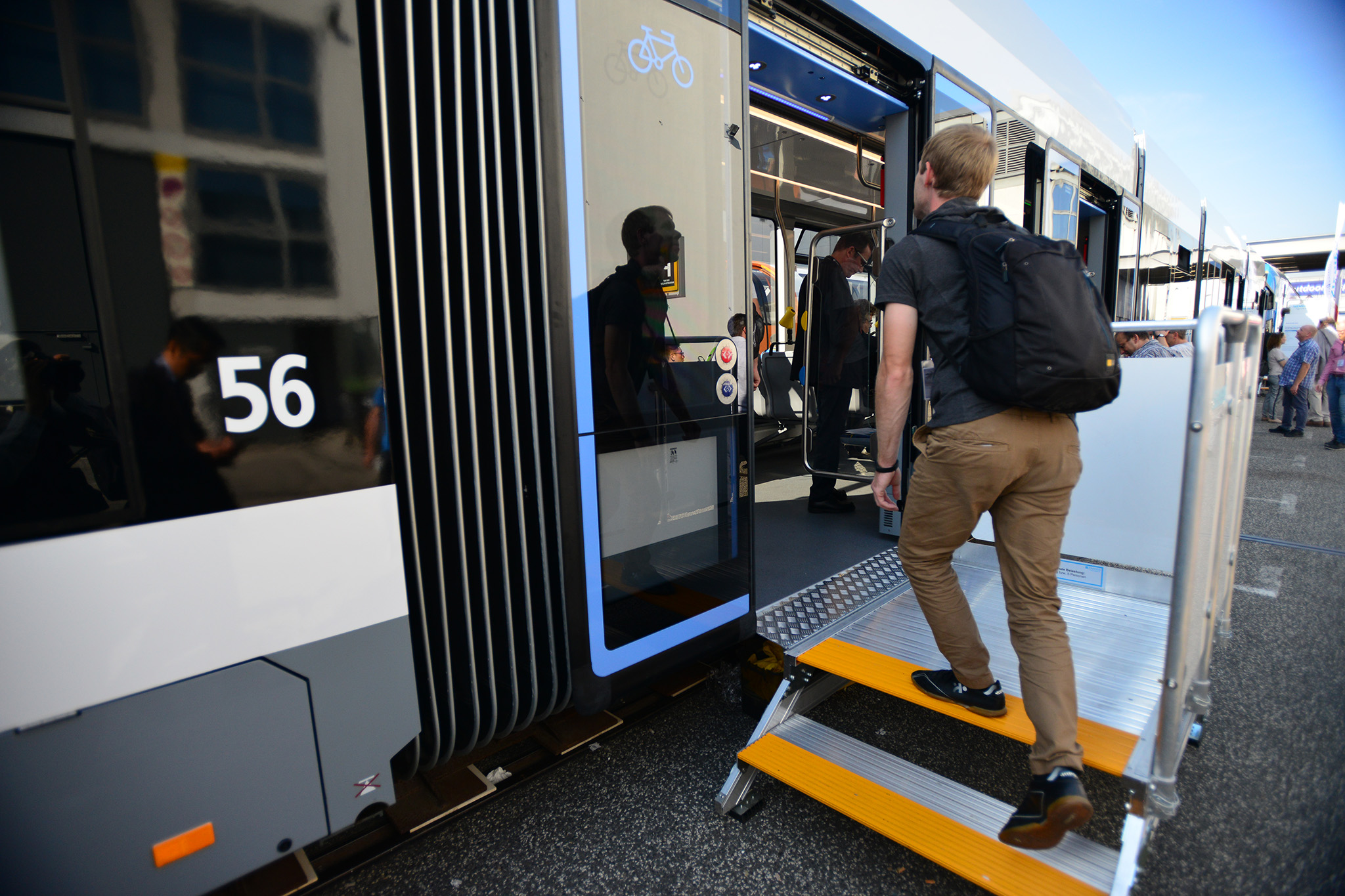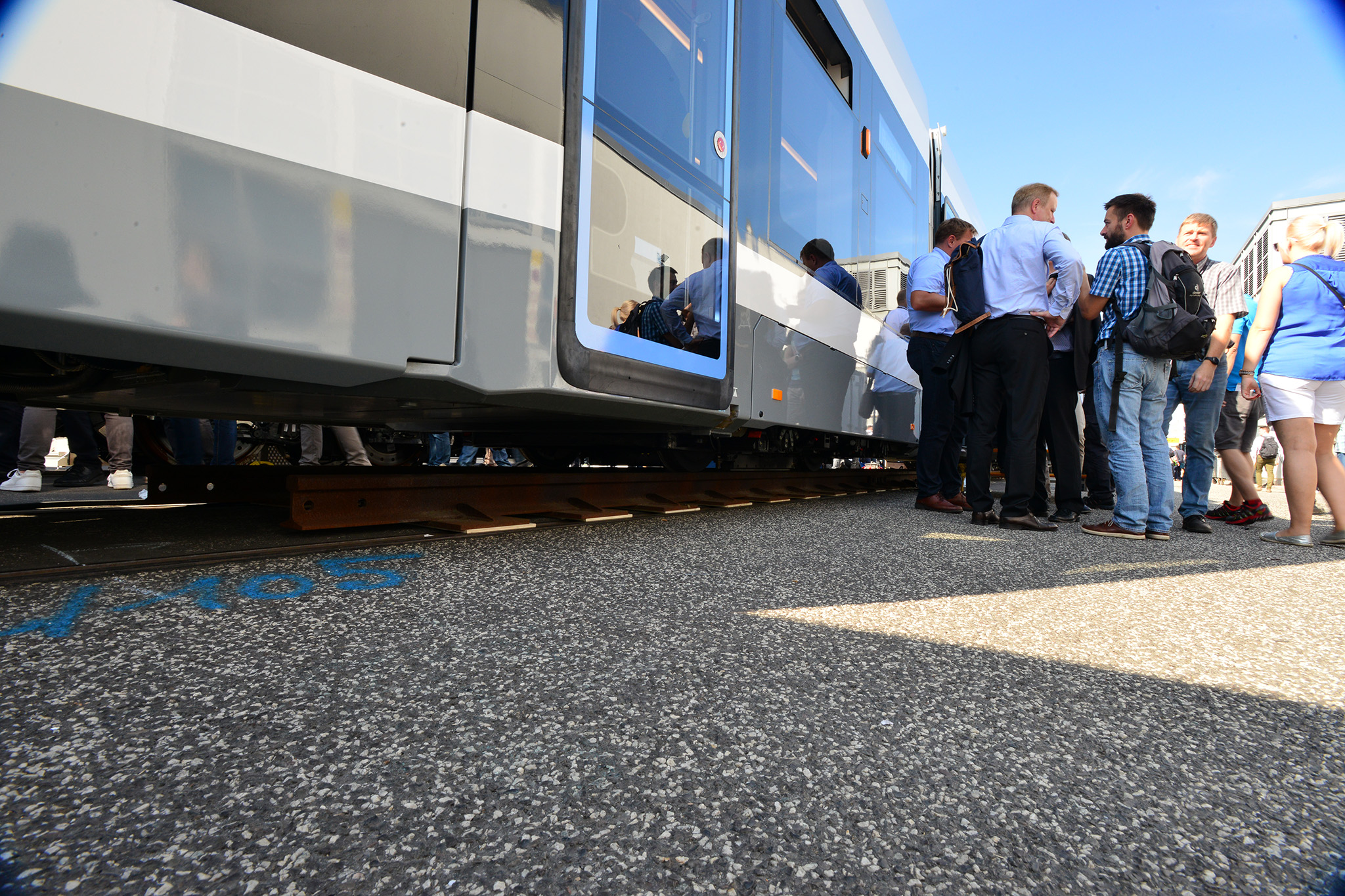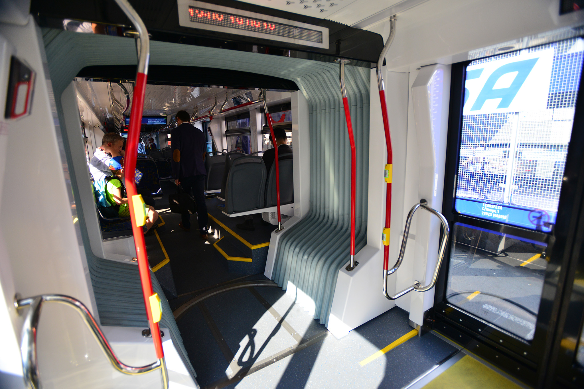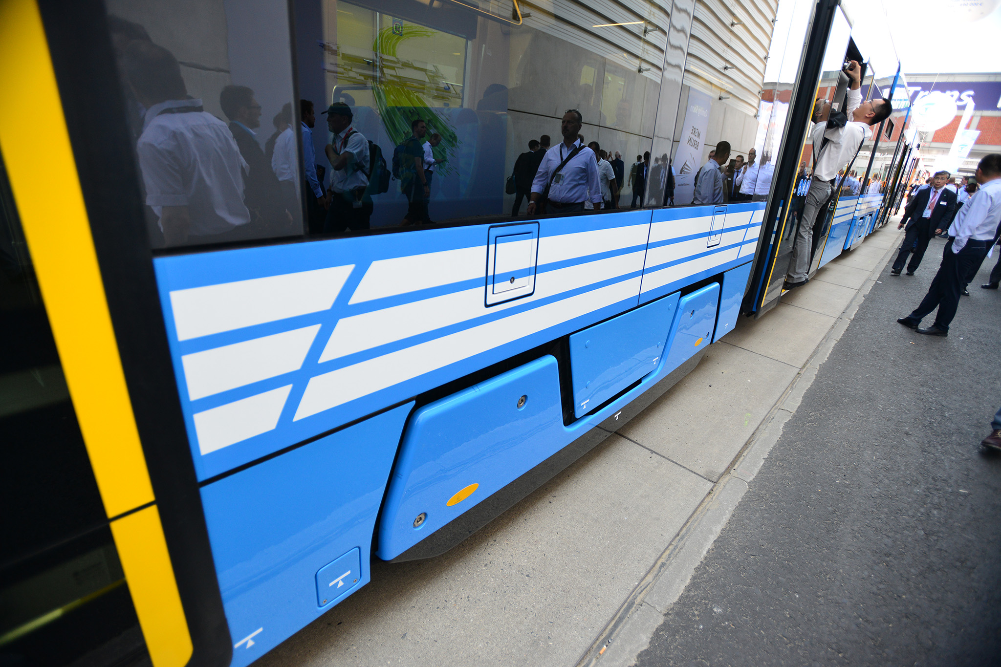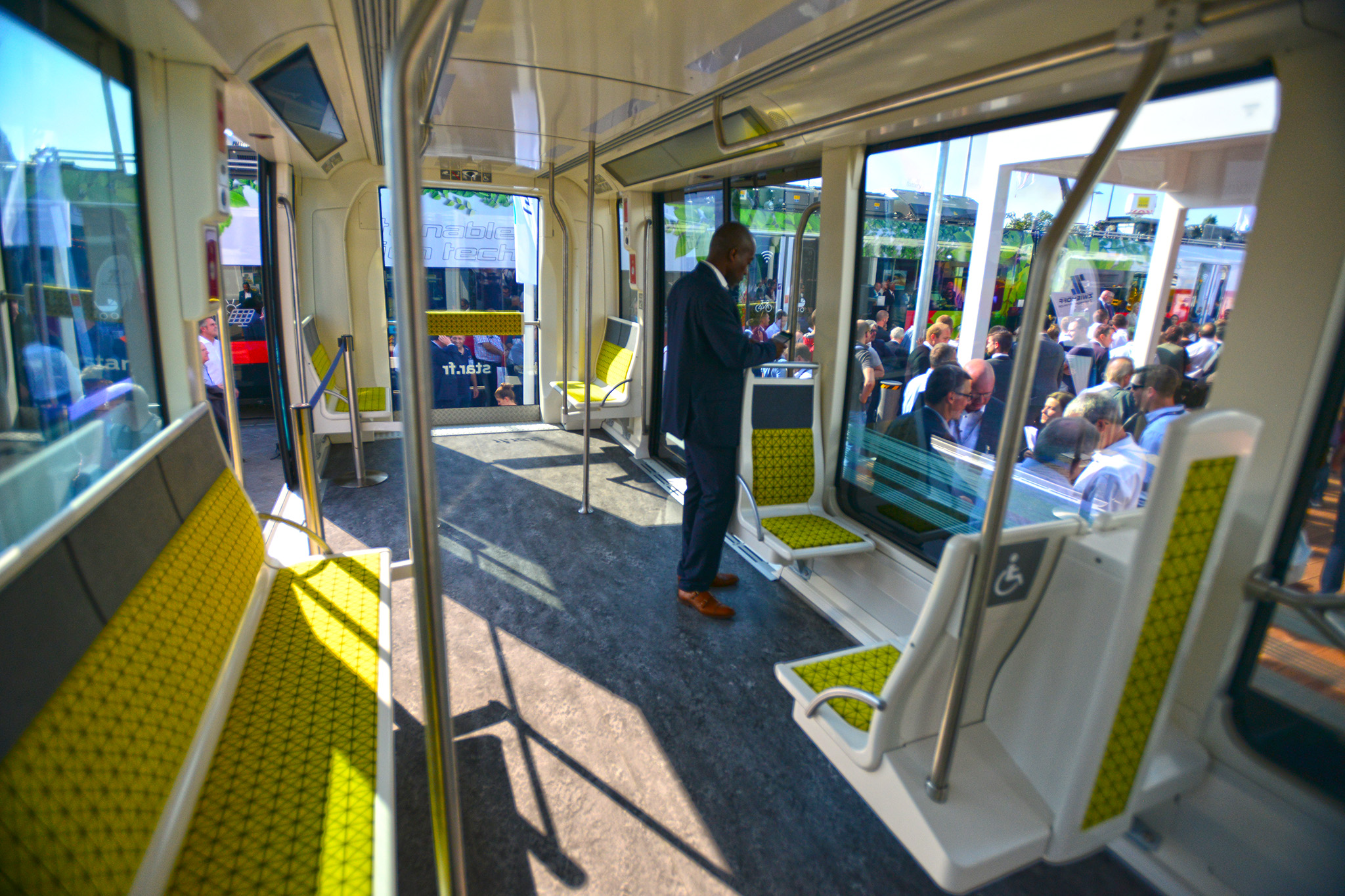 德國西門子生產的Avenio M Ulm輕軌列車,有5節車廂,全車低底盤設計。