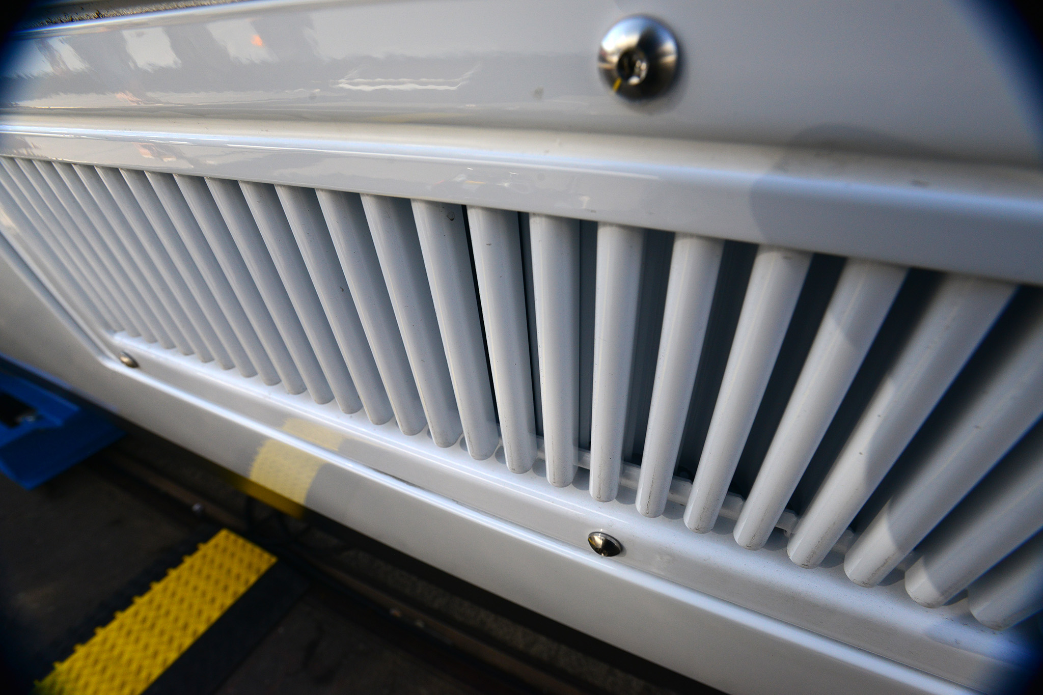 座椅採深藍色小方格點設計,空調出風口從窗邊下送出,推測如此設計應該較適合暖氣出風口。