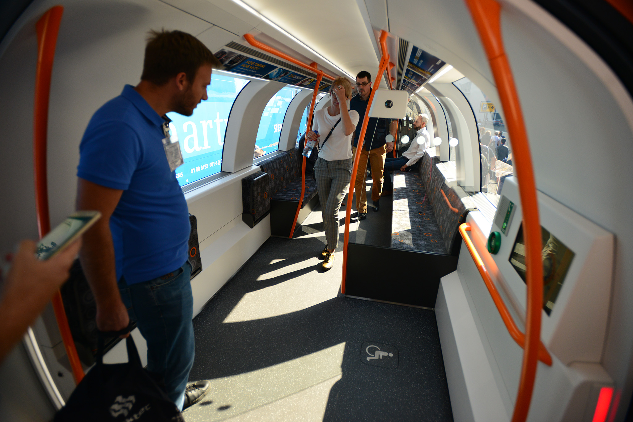 車廂內就在一根管子中一般狹小,列車高度僅有2,650mm,其中車廂地板高度就佔去695mm,換句話說車廂內空間高度僅2M不到,這對於身材高大的歐洲人來說走行都要低著頭才行。