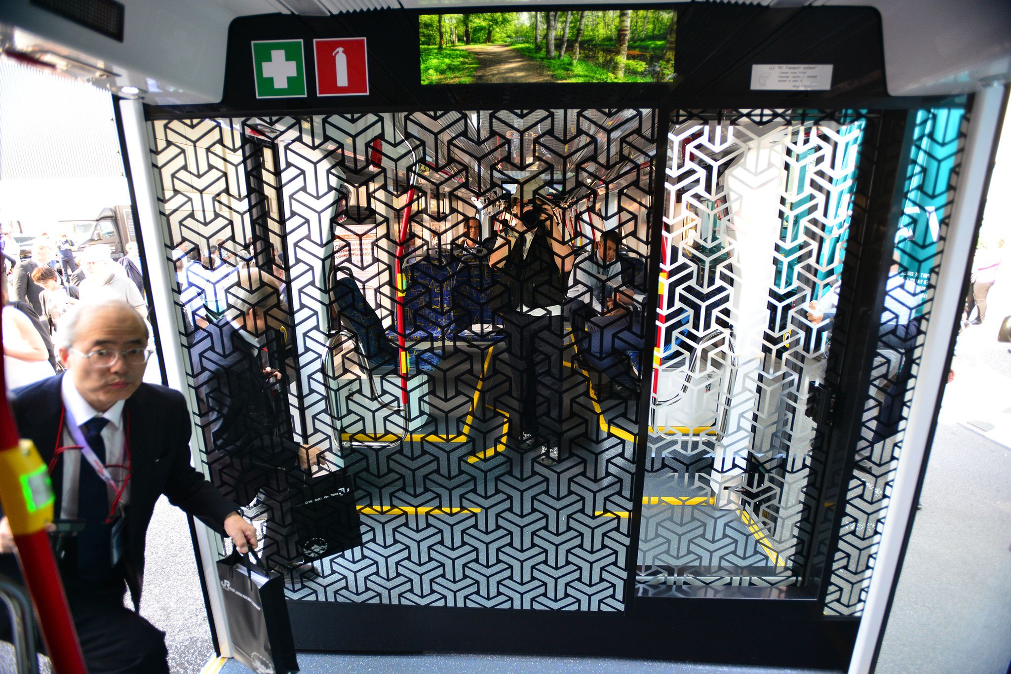 非常誇張的側門彎弧設計,而且車門還是內滑門。