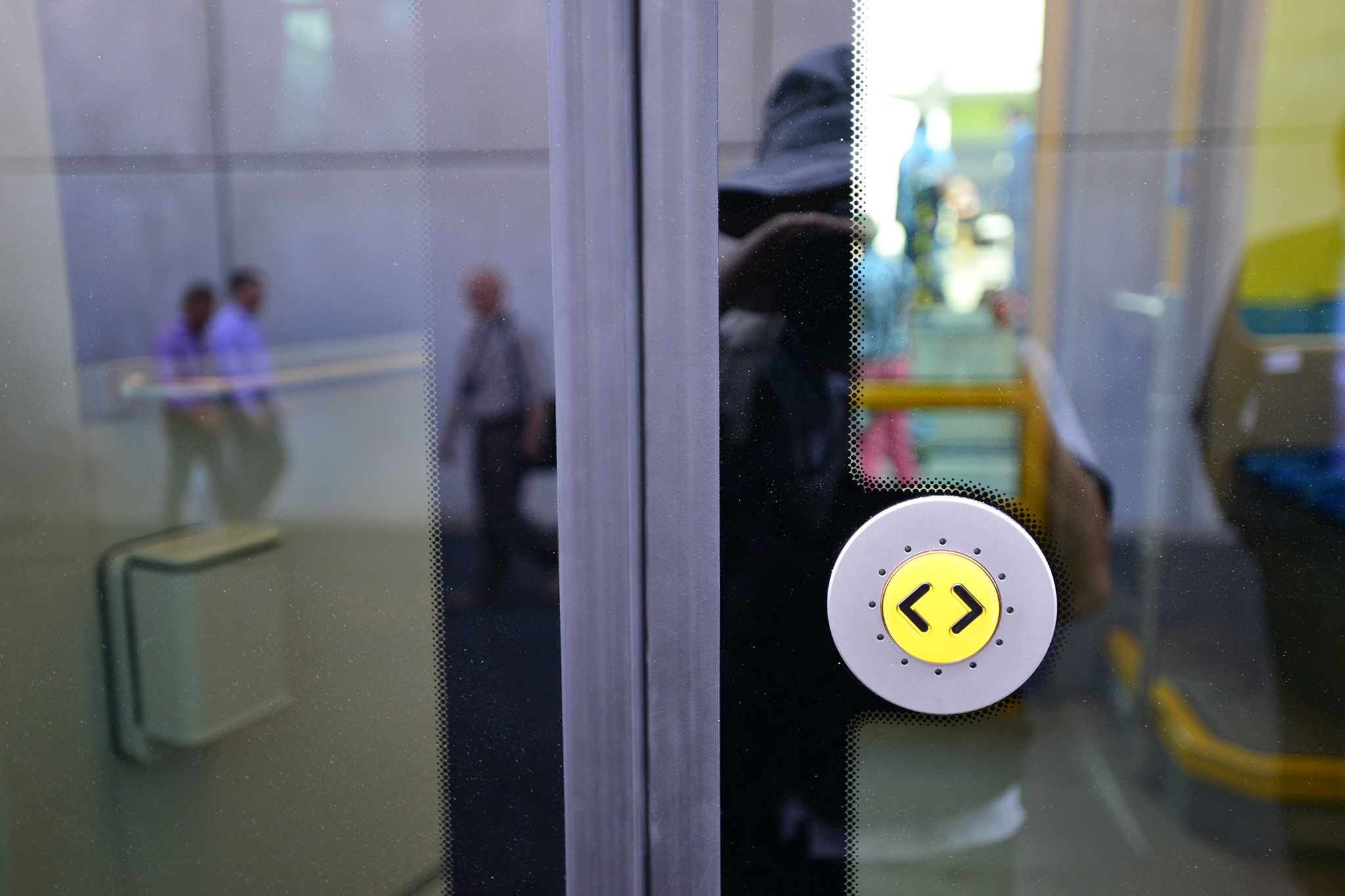 門上方的滑動機構,入門口還有兩盞LED照明燈,增加入口處的亮度。
