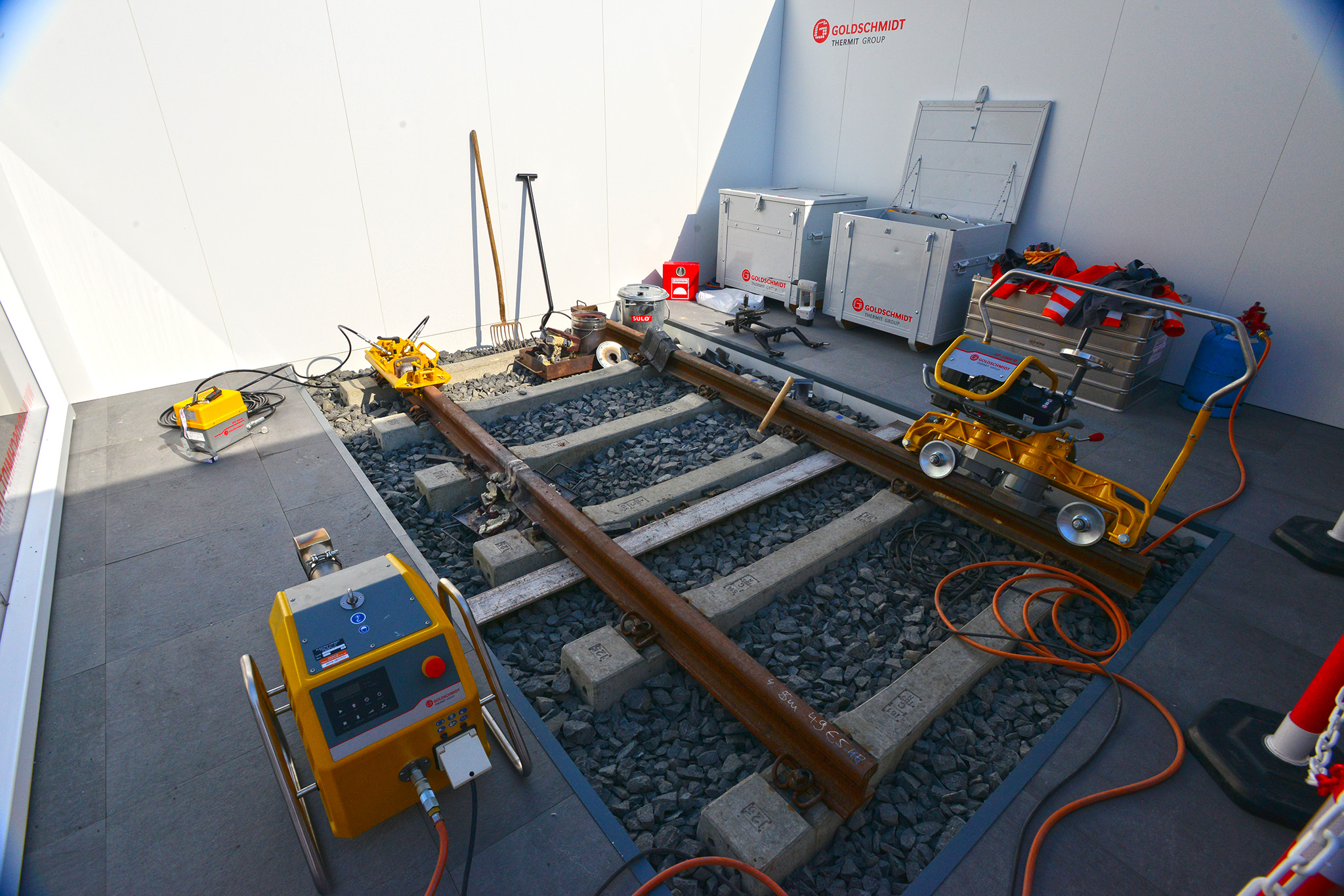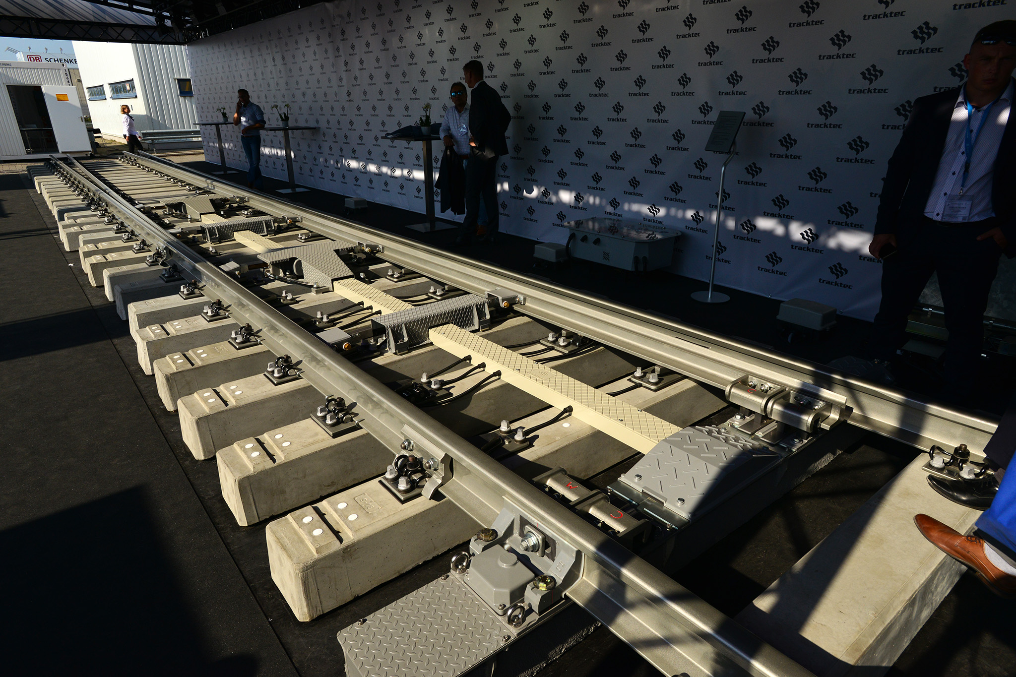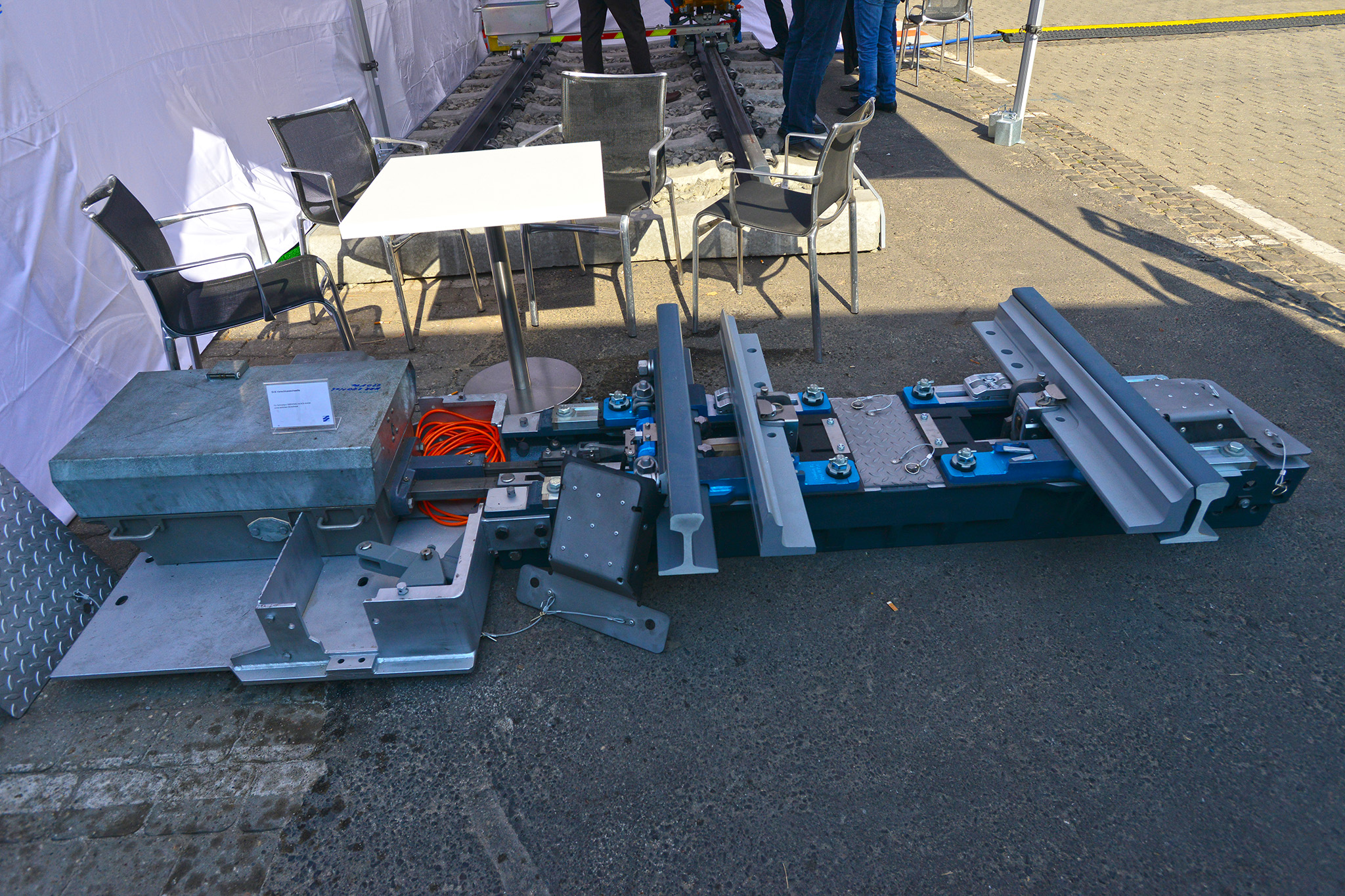 長軌型轉轍器連動機構,這種超長型的轉轍器一般用於高速列車可以不用降速太多的情況下切換路線。