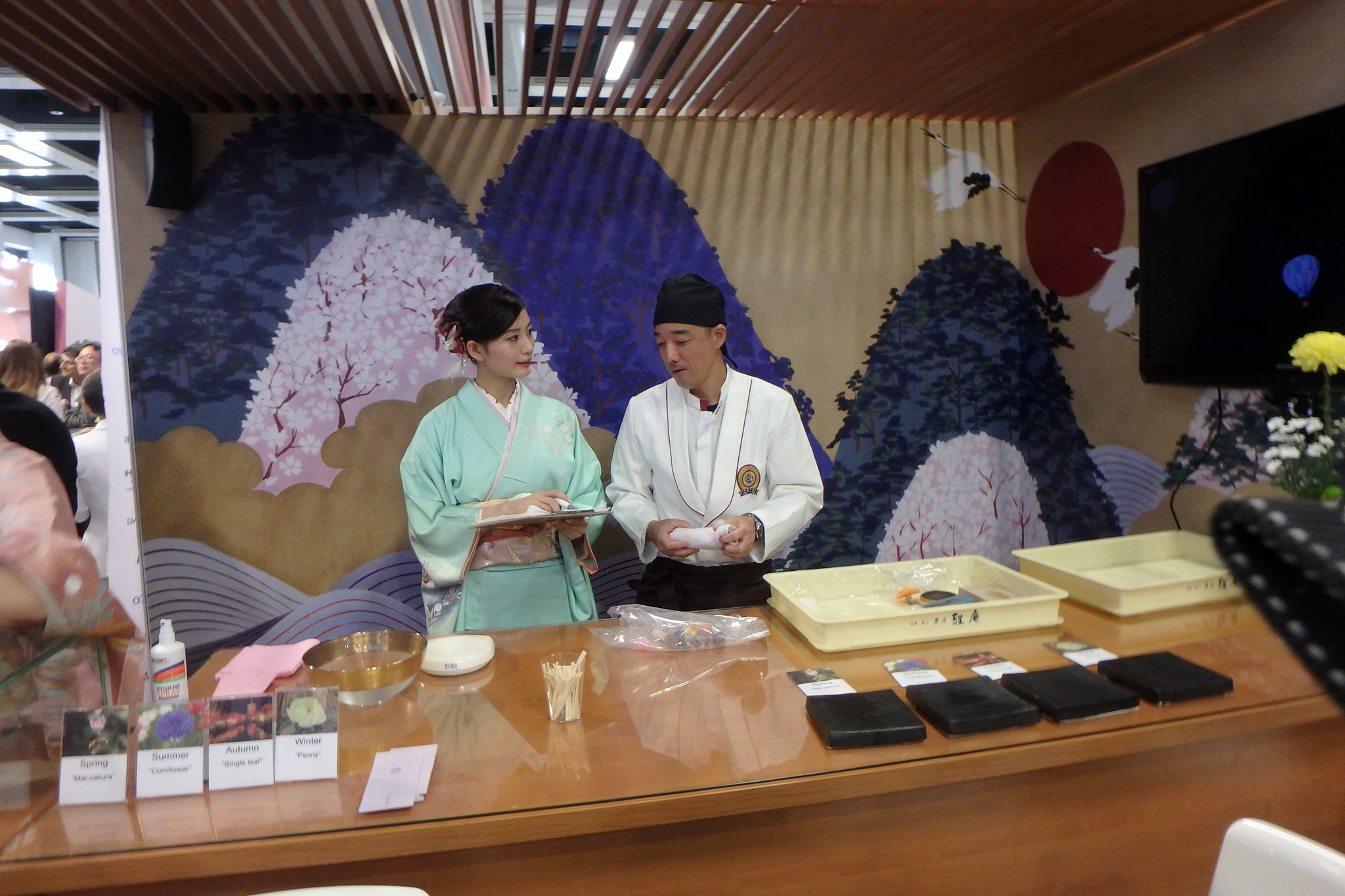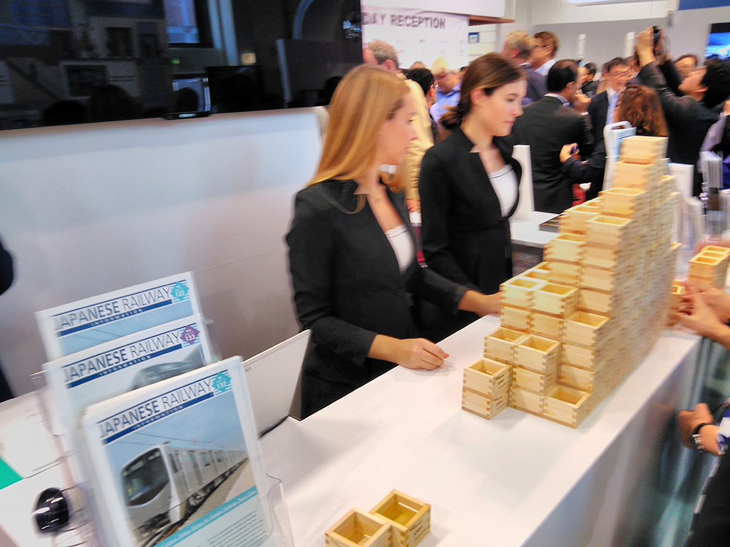 哇!還是日本館比較好,有吃又有喝…哈哈!方木盒子裝的是日本清酒,喝完木盒子可以回收也可以帶回去當作紀念喔!