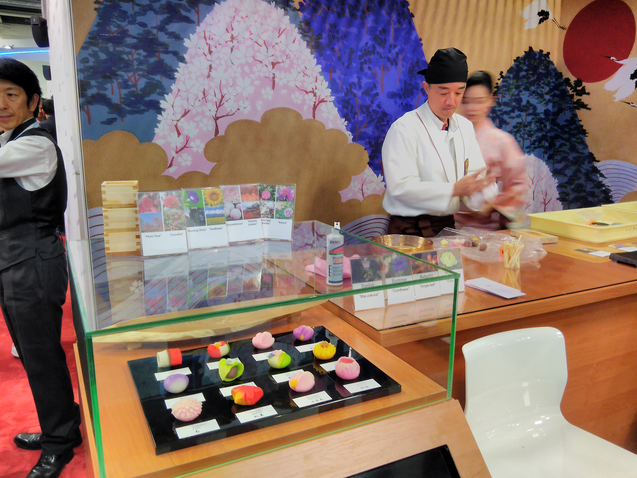 櫥窗內捏出各式各樣好像很好吃的彩色麻糬。