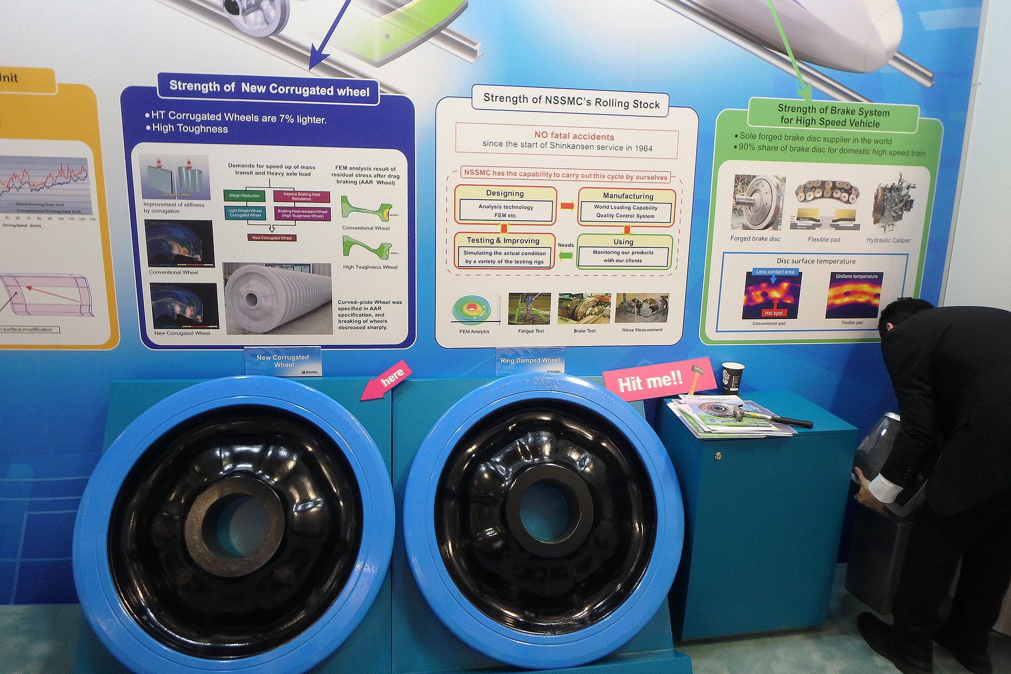靜音輪和一般輪的差別,現場也有榔槌可供敲擊實驗。